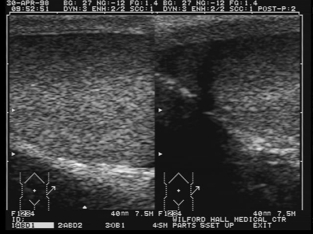 chronic testicular pain for 1.5 years. Following the normal ultrasound,