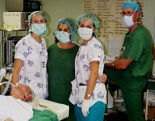 The general anesthesia team, two Anesthesiologists from the FACH hospital in Chile, and LTC Jim Machette, Nurse Anesthetist from the USAF.