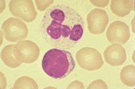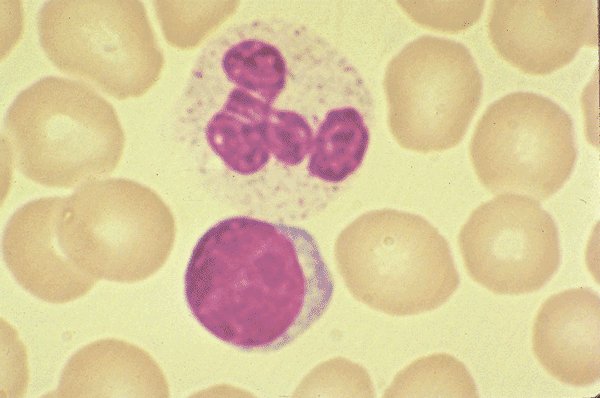 a normal neutrophil. The red blood cells