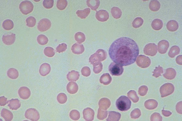 in this slide. The patient's diagnosis was ANLL M6. Two late erythroblasts