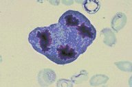 Atomic bomb induced leukemia: This tetraploid blast was in the peripheral