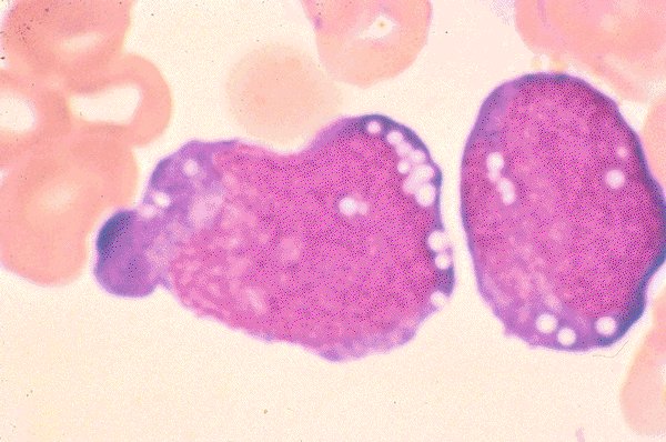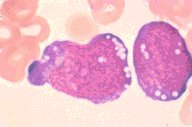shows characteristic vacuolated L3 blasts. Vacuoles are present in both