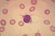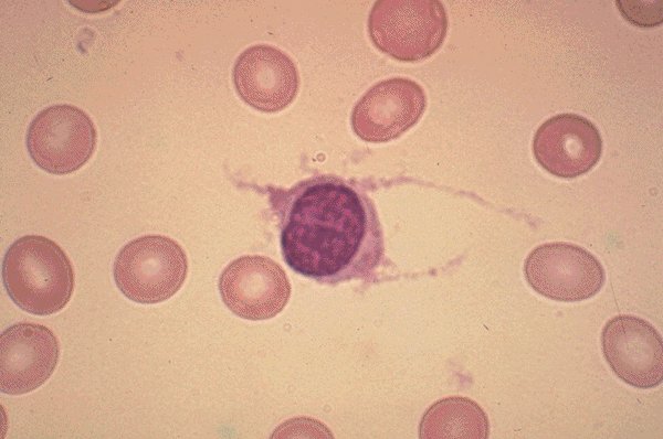 Hairy cell leukemia: A typical hairy cell is seen in the center
