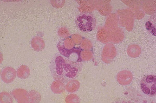 have been engulfed by a cell in the monocyte macrophage line. Several