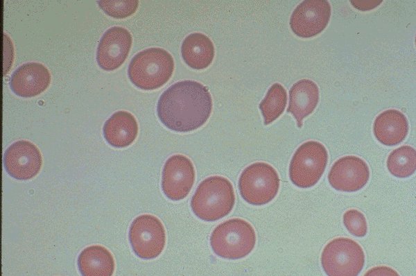 remainder of the red cells in the field show significant variation