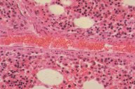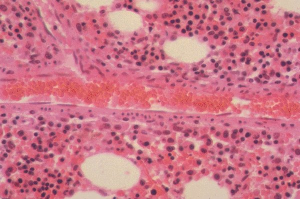 Normal marrow with a transverse section of blood vessel