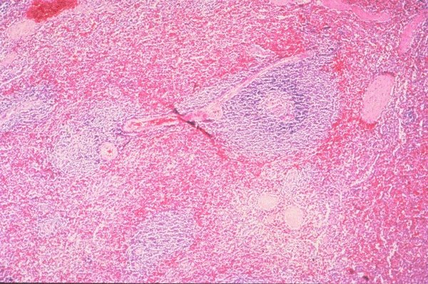 spleen which has been stained with H&E. The